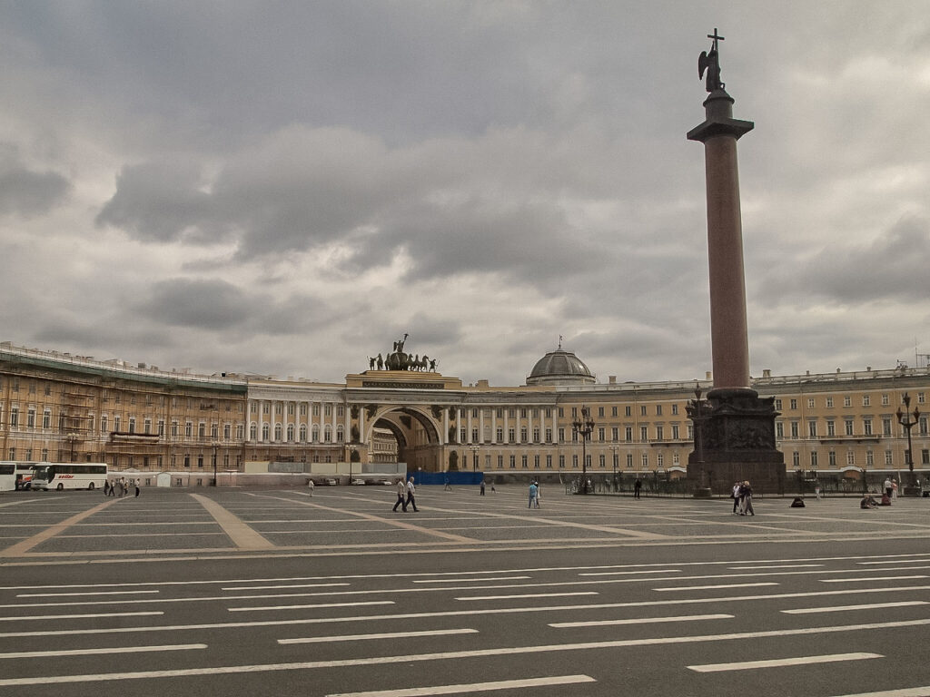 私が2012年に訪れた際に撮影したもので、そこには有名なエルミタージュ美術館もあるため、サンクトペテルブルクの定番観光スポットとして観光客で賑わっていましたが、広大なその広場は、ショスタコーヴィチの交響曲第11番「1905年」の題材となった「血の日曜日事件」、そして今回演奏する交響曲第12番「1917年」の題材となった「十月革命」が起こった場所でもあります。