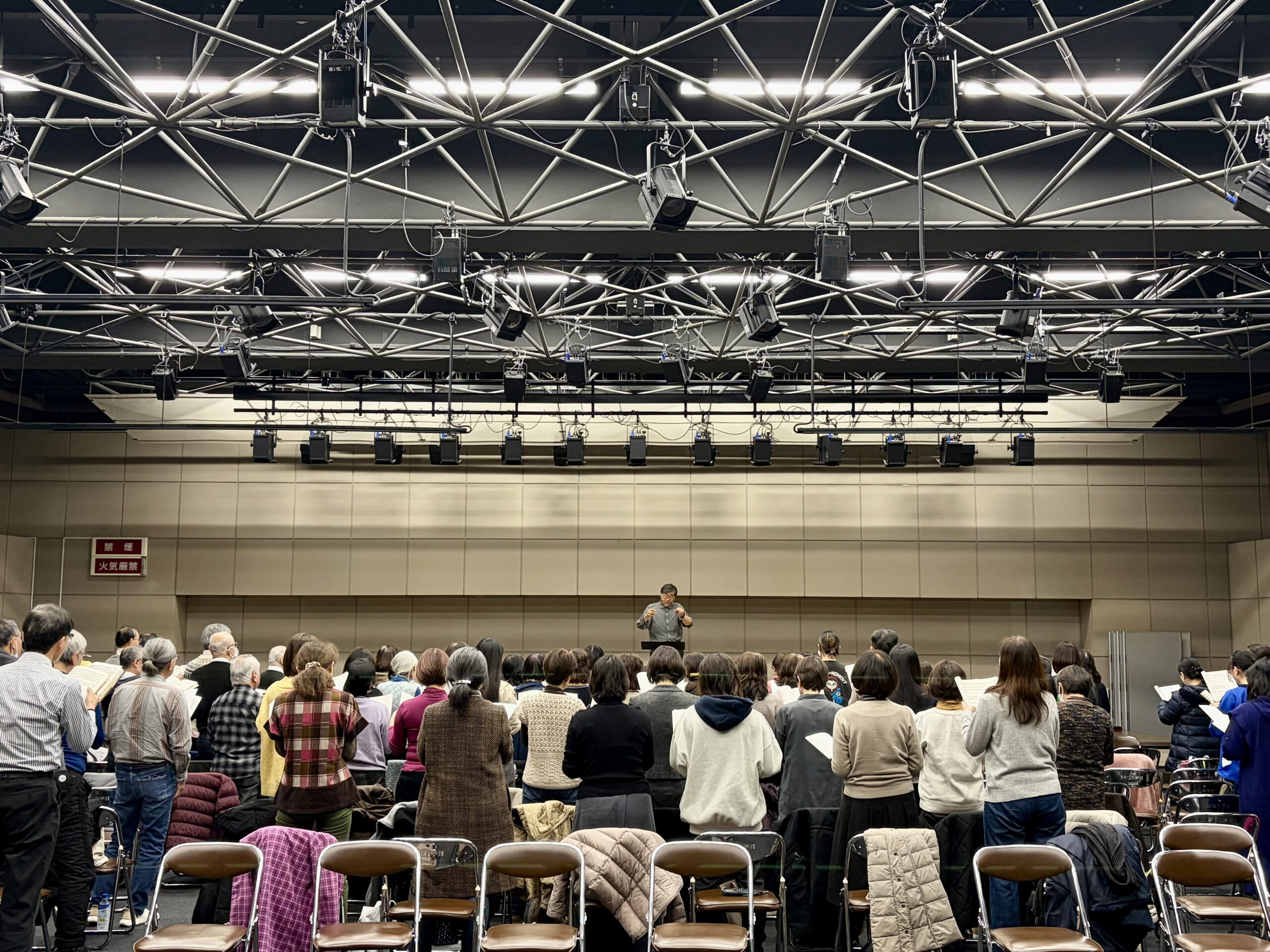 総勢約300名のため、いつもは2グループに分かれて練習していますが、次回は本番指揮者の海老原先生がいらっしゃるため、初の合同練習になります!