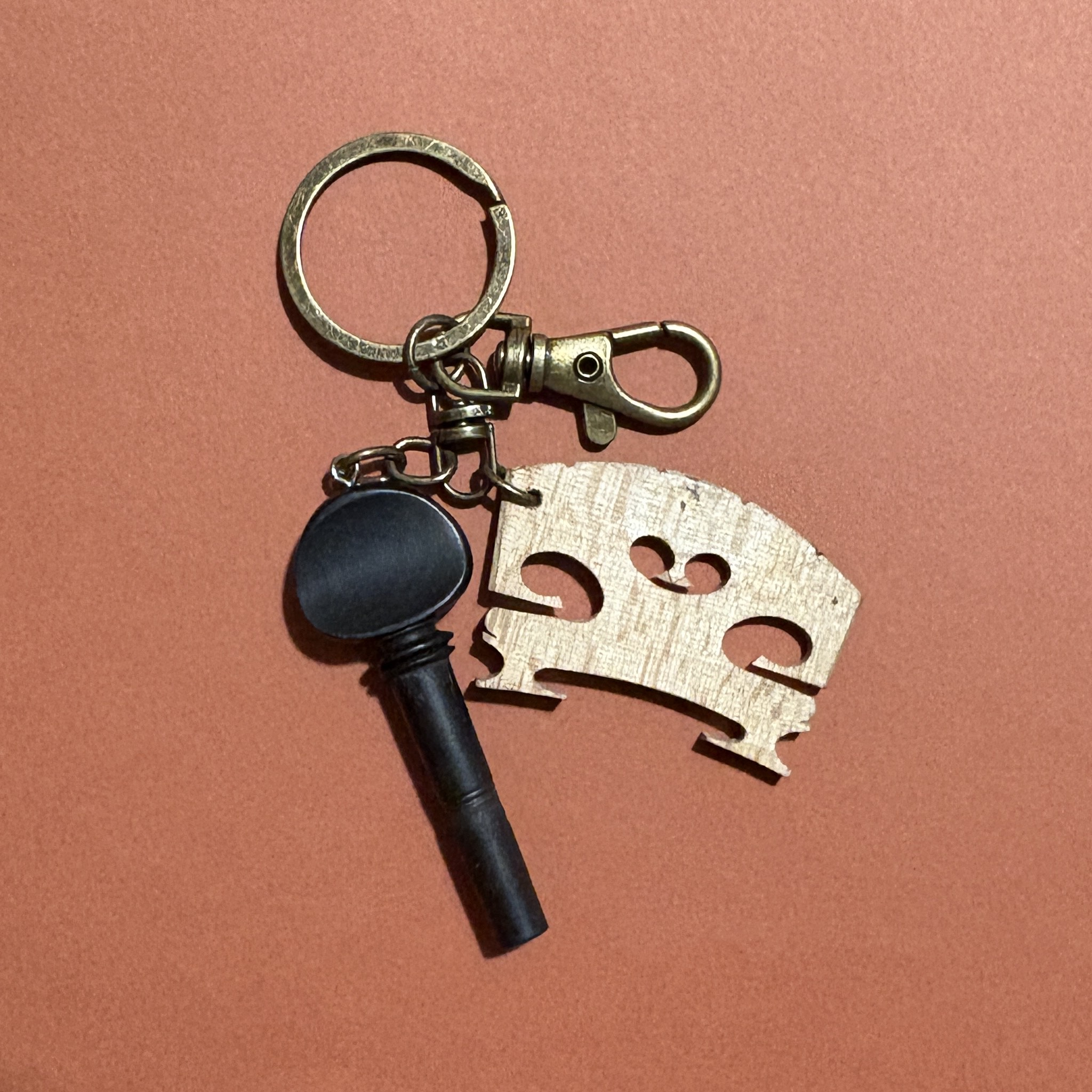 2025.11.10 楽器調整に行ってきました 11月の本番に向けて、先日バイオリンの調整に行ってきました。 駒とペグ、ナットを交換してもらい、もともと使っていたものをいただきました。 その際、店員さんから「ペグはキーホルダーにする方が多いですよ」とお話を伺い、せっかくなら駒もキーホルダーにしたら可愛いかなと思い作ってみました! 穴を開けるのに苦戦しましたが、なかなかの出来に大満足です😆 Vn. H.S.