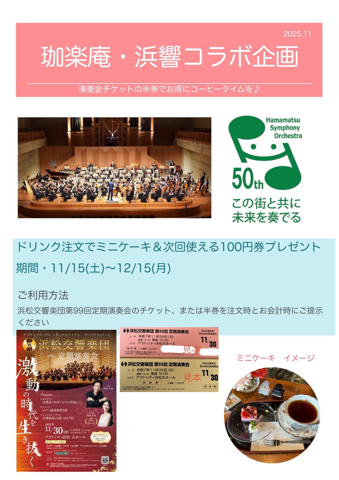 99回定演のチケットを使ってお得なサービスが受けられます♪