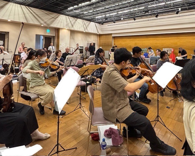 余談ではありますが、合奏開始前、ホルンを担当している私が普段通り上手(かみて)側で音出しをしていると、下手(しもて)に移動するようにとの指示が。ホルンは下手側で演奏する方がより一般的だと思いますが、上手側に慣れている私にとっては下手側で吹くのはとても新鮮でした。本番まで残り2か月あります。しっかりスコアを読み、周りをよく聴くことで今回のセッティングでの演奏が良いものになるよう頑張ります!